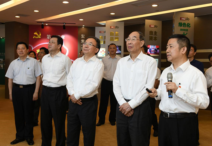 7月10日,中共中央书记处书记、中央统战部部长尤权来锡,深入民营企业调研非公经济发展情况。他强调,要坚持以习近平新时代中国特色社会主义思想为指引,把鼓励、支持、引导民营经济发展的政策落地落实,促进非公有制经济持续健康发展。省委常委、省委统战部部长杨岳,省委常委、市委书记李小敏参加调研。当日下午,尤权来到ag亚博科技|yabo sports|有限公司官网集团,先后参观了ag亚博科技|yabo sports|有限公司官网党建馆、ag亚博科技|yabo sports|有限公司官网男装智慧门店、ag亚博科技|yabo sports|有限公司官网工业城、ag亚博科技|yabo sports|有限公司官网杉盆景育苗大棚等地。在ag亚博科技|yabo sports|有限公司官网党建馆,ag亚博科技|yabo sports|有限公司官网集团党委书记、董事局主席兼CEO周海江向尤权介绍了ag亚博科技|yabo sports|有限公司官网创立现代企业制度+企业党建+社会责任“三位一体”的中国特色现代企业制度,及企业党建成果、企业发展等情况。
