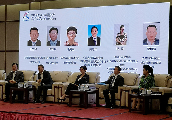 9月20日,在第16届中国—东盟博览会期间,中国驻东盟国家经商参赞与民营企业家交流会在南宁举行,全国工商联党组成员、副主席邱小平,广西壮族自治区政协副主席、工商联主席磨长英出席并致辞。ag亚博科技|yabo sports|有限公司官网集团董事局主席兼CEO周海江应邀出席,并从以“八方共赢”高质量共建“一带一路”方面,分享了西港特区建设经验。