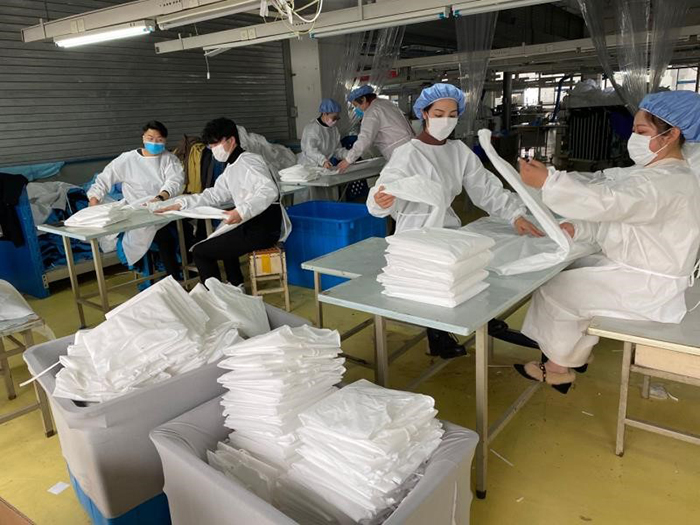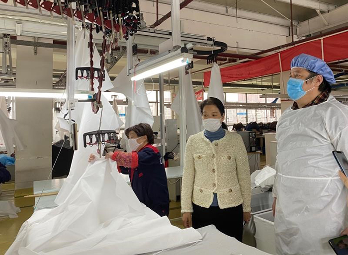 此次,我们终于能有机会,像一线工人一样,身披防疫“铠甲”,深入到车间和工人们一道,站在工作台前,体验“防护服”的制作工序,聆听一直以来,奋战在车间班组的优秀党员干部们,动情讲述他们的艰辛转型,转产经历,讲述他们日日夜夜的顽强付出,讲述她们无怨无悔的奉献故事。
