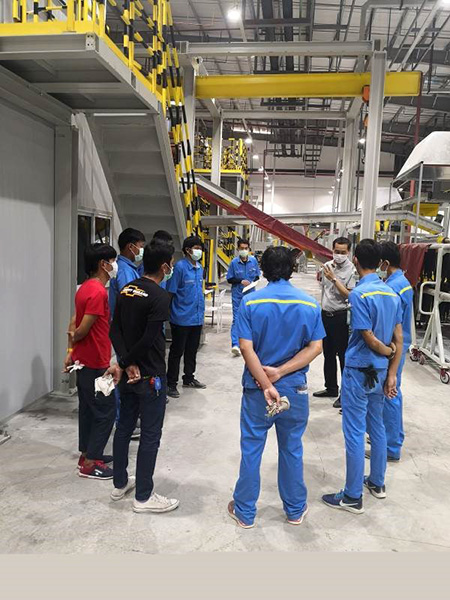 在国内疫情严重的当下,工厂内没有国内的熟练工,朱崇留就对泰国员工进行培训,让他们尽快成为能上前线的“战士”。与此同时,他并没有忽视国内半钢工厂的工作任务。忙完泰国工厂的事后,又加班加点远程处理国内车间的工作,压延的问题点分析,设备的安装调试,内衬层压延机调试等,事无巨细,亲力亲为,用实际行动发挥着共产党员的模范带头作用。