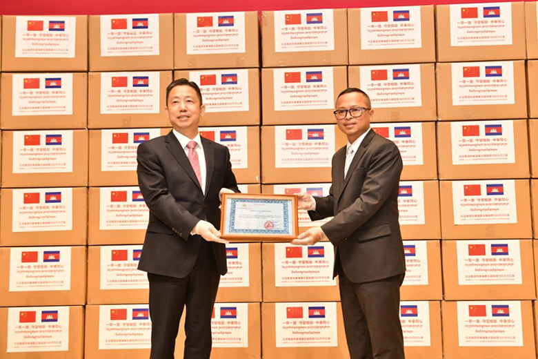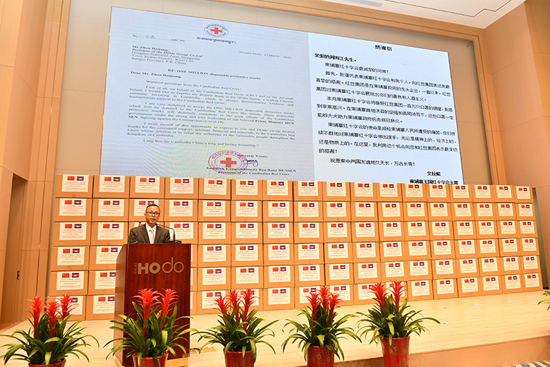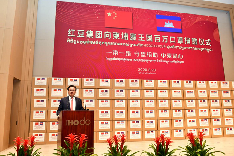 周海江在仪式上表示,在习近平总书记的亲自指挥、亲自部署下,我们举国上下同心抗疫,经过60多天的艰苦奋斗取得阶段性胜利。而在中国抗疫斗争初期最艰难时刻,洪森首相不顾危险,亲赴北京,雪中送炭,支持中国抗疫,体现了危难之际中柬两国的深厚兄弟情谊。多年来,在洪森首相的英明领导下,柬埔寨经济发展迅猛,现在柬埔寨疫情防控进入攻坚期,作为在柬投资的中国龙头企业,ag亚博科技|yabo sports|有限公司官网集团用实际行动诚挚表达中国人民对洪森首相英明领导的一份敬意。