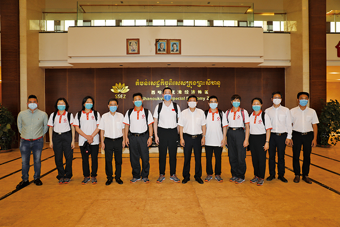 西港特区公司总经理曹建江代表西哈努克港经济特区向专家组组长、中国广西壮族自治区卫生健康委员会保健局副局长艾翔一行表示热烈欢迎,曹建江表示,感谢中柬政府和祖国人民对西哈努克港经济特区的特殊关怀,你们的到来使我们对防疫更加充满了胜利的信心。在听了曹建江简要介绍西哈努克港经济特区的建设发展情况后,艾翔对特区十多年来的建设成果和为西哈努克省经济社会发展、解决人民就业以及深耕中柬友谊所作出的巨大贡献及在西哈努克省举足轻重的地位深表赞叹。